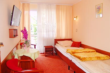 Oferujemy pokoje z łazienkami, prowadzimy własną gastronomię.