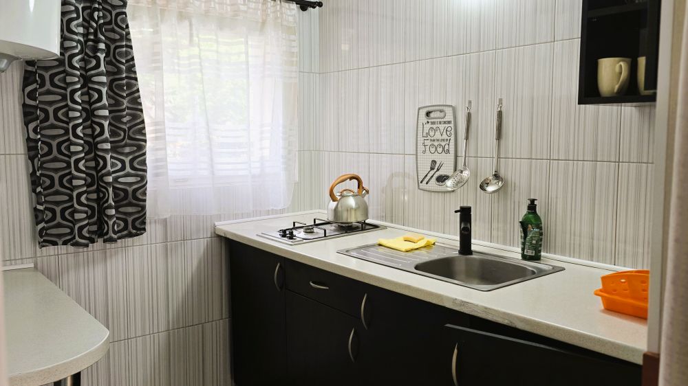 A obok naszych budynków znajduje się sklep spożywczy z ciepłymi bułeczkami i innymi produktami.