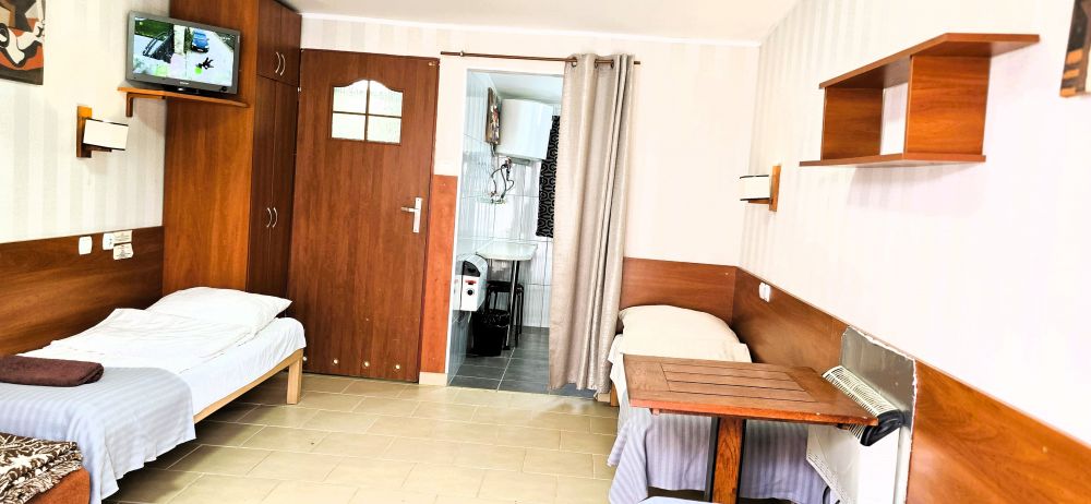 Pokoje i domki 2,3,4,osobowe,w wysokim standardzie, wszyscy w jednym miejscu razem ,,, wyposażone są w czajnik bezprzewodowy, lodówkę, tv plazma, wszystkie z bardzo ładnymi łazienkami, w każdej znajduje się mydło do rąk, żel pod prysznic, wszystkie posiadają suszarki do włosów, na naszym terenie znajduje się plac zabaw dla dzieci, grille stacjonarne.... dla naszych gości jest miejsce do biesiady z ławami i stołami, ZADASZONA wiata do spotkań zorganizowanych, zabaw miejsce do rozrywki , sala gimnastyczna- do treningów różnych dyscyplin a w lokalu miejsce do zorganizowania pogadanek grupowych, parking oraz recepcja.